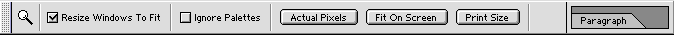 changes dynamically with each selected tool (zoom tool options shown here). With other tools you will find things like brush options, type controls, etc.