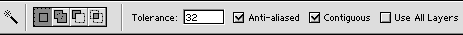 The Magic Wand Tool is one of the tools that in theory sounds great but in practice isn't all that usefull because doesn't work predictably. The tool works by selecting an area of pixels which are of similar color to the pixel you clicked on with the Wand. You can control how close pixel color must match by setting the tolerance in the toolbar, the lower the number, the closer the adjacent color must match before it is included in the selection. You can also set the Wand to select all colors in the image which are similar (rather than just adjacent pixels) by checking the Contiguous box.